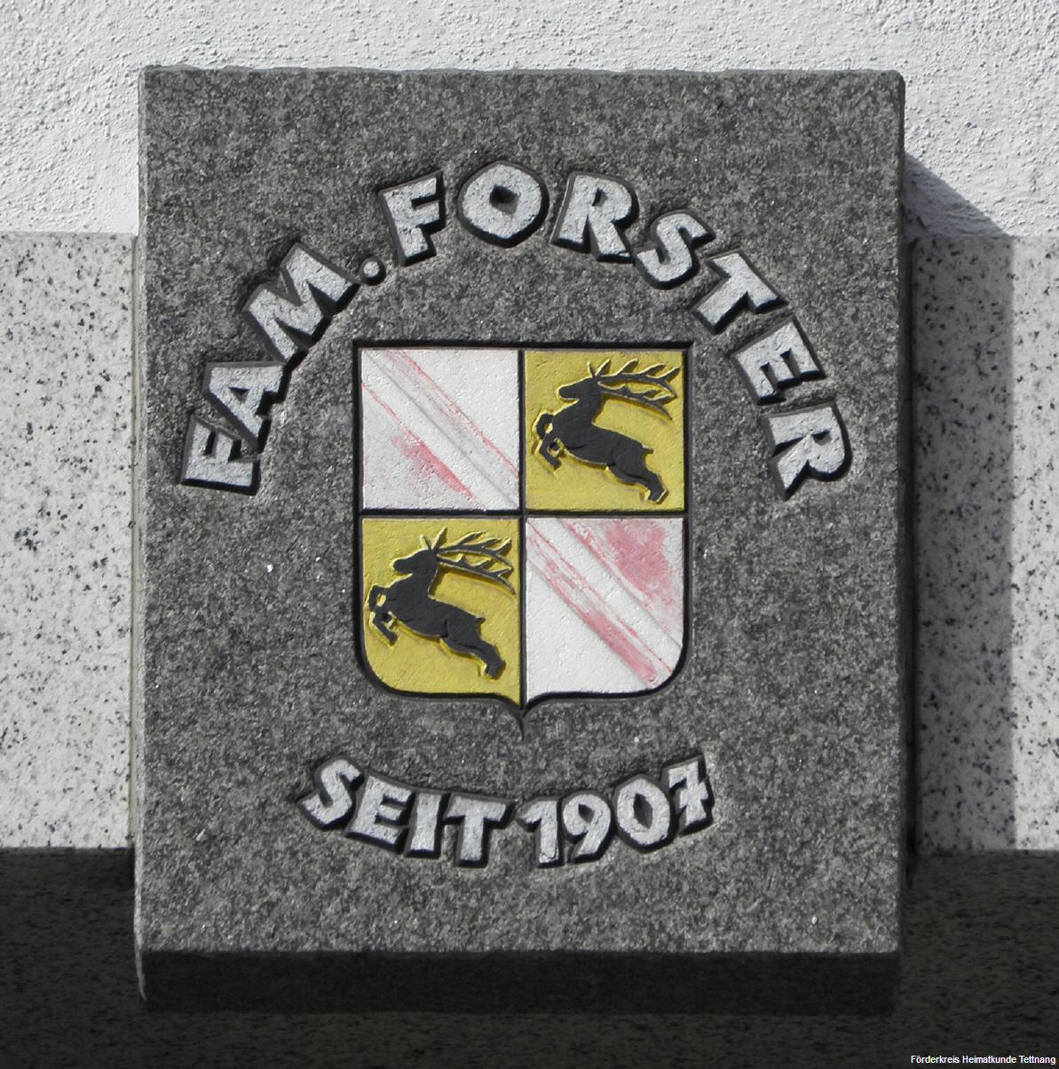 Das Wappen der Familie Forster wird zumindest vom Tettnanger Zweig der Familie seit Menschengedenken geführt, nachgewiesen ist es seit der Zeit um 1900. Genaue Hinweise sind leider nicht überliefert. Der Hirsch im Wappen sowie Adlerflug, Jagdhorn und Eichenzweig als Helmzier deuten darauf hin, dass das Wappen in Anlehnung an den Familiennamen (Foster = Förster) gestaltet wurde.