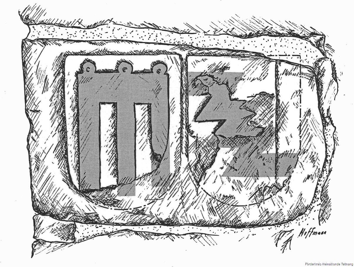 - Abb. 8: Skizze des Allianzwappens am Turm der St. Gallus-Kirche