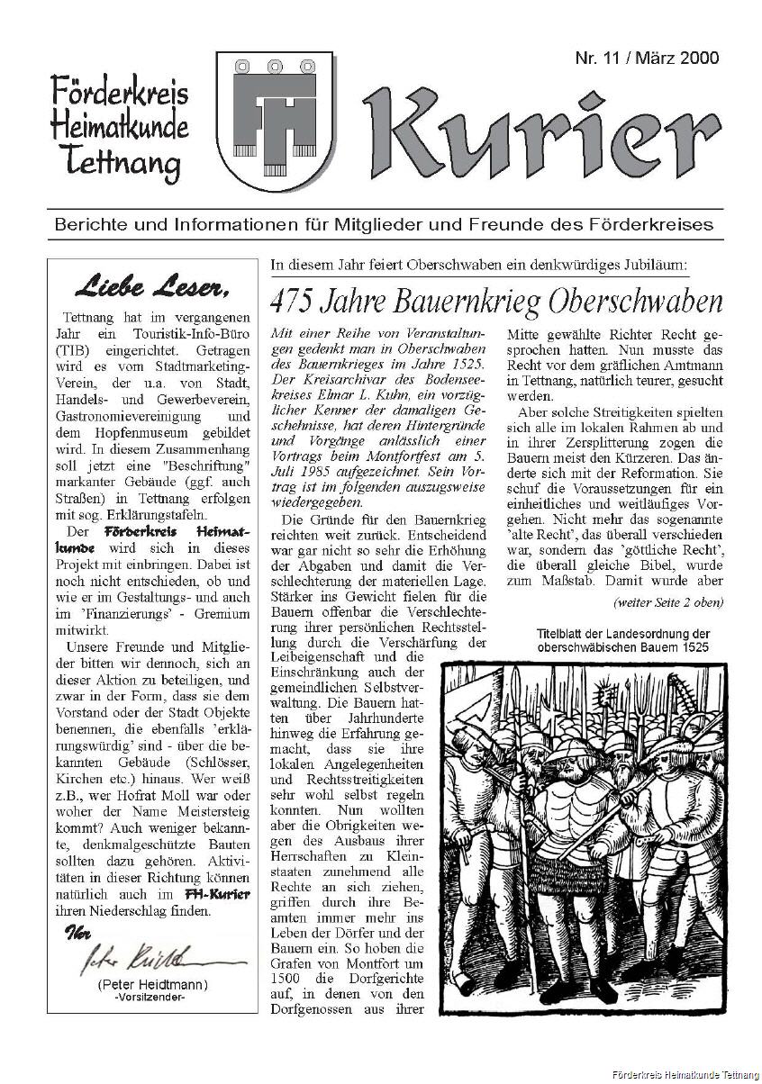475 Jahre Bauernkrieg in Oberschwaben - Eine Kurzchronik über die Ereignisse.