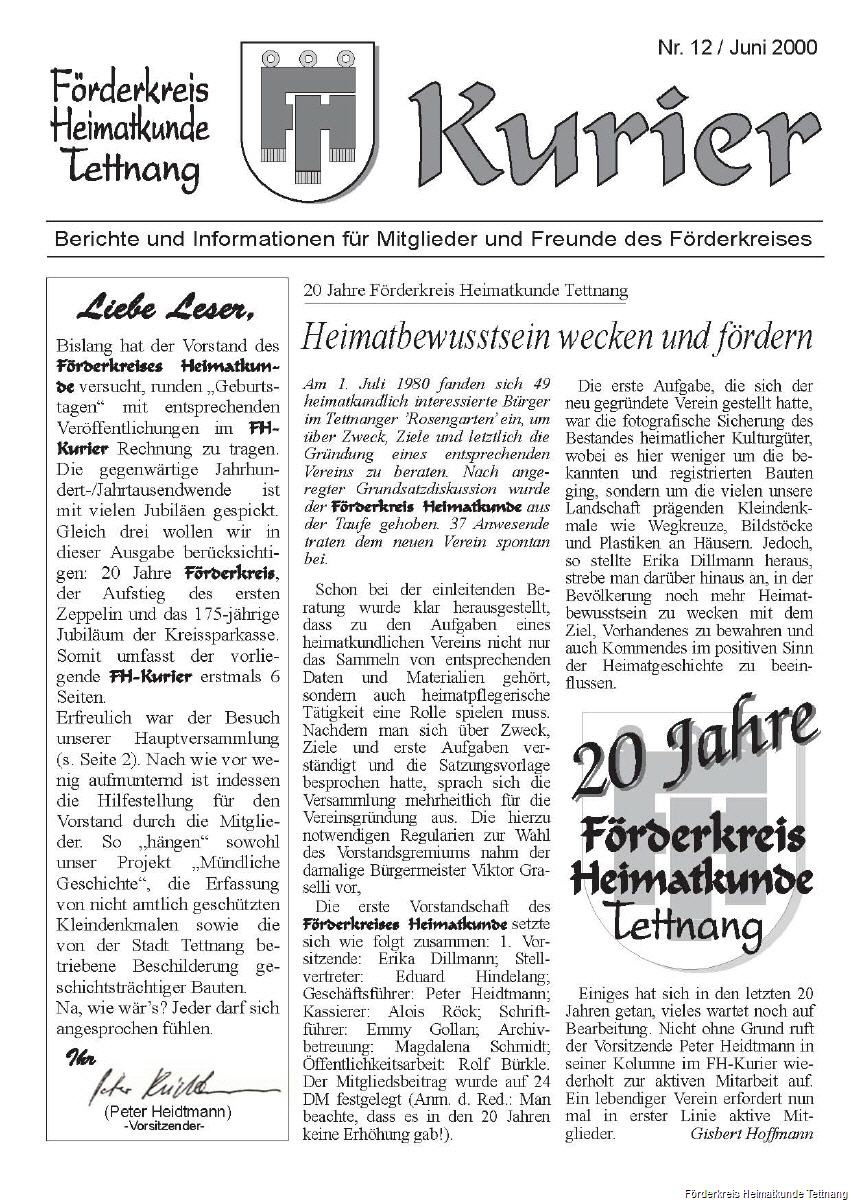 FH-Intern: Kurzer Rückblick auf 20 Jahre Förderkreis Heimatkunde; Notizen aus der Hauptversammlung.
