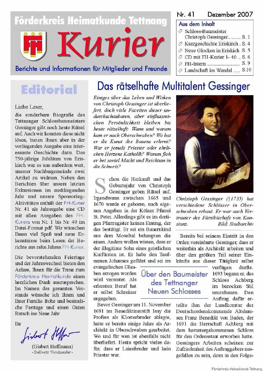 Das rätselhafte Multitalent Gessinger – Über den Baumeister des Tettnanger Neuen Schlosses.