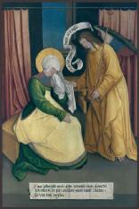 (v.l.n.r.): Anna und ihr Gatte Joachim begegnen sich unter der Goldenen Pforte. Die Flügel-Reproduktionen im Chor von St. Anna im geschlossenen Zustand. Die Flügel-Reproduktionen im Chor von St. Anna im geöffneten Zustand.