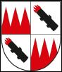 Geviert; 1. Feld: schrägrechtsgeteilt von Silber und Rot mit je einer Leiste in verwechselten Farben an der Teilung, 2. und 3. Feld: in Gold ein schwarzer, springender Hirsch, 4. Feld: schrägrechtsgeteilt von Rot und Silber mit je einer Leiste in verwechselten Farben an der Teilung. |