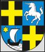 Geviert; 1. und 4. Feld: in Schwarz ein goldenes Balkenkreuz; 2. Feld: in Blau ein silbernes Einhorn; 3. Feld: in Blau auf silbernem Wellenmeer ein schwarzes Boot mit silbernem Segel, begleitet von einem sechsstrahligen goldenen Stern. |