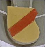 In der Kapelle findet man das Wappen der Markgrafen von Baden-Hachberg-Sausenberg zweimal: auf einem Schlussstein der Gewölbedecke im Langhaus (Abb. 1) und auf einer Netzrippenkonsole im Chor (Abb. 2). Alle Linien der Markgrafen von Baden haben das Stammwappen des Hauses unverändert geführt. Es zeigt in Gold einen roten Schrägbalken. Auf dem gekrönten Helm wachsen zwei Bockshörner in Gold und Rot. Die Helmdecke ist rot und golden (Abb. 3). |