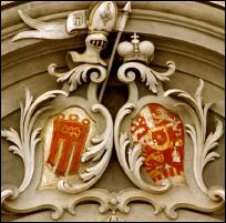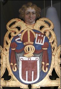 Abb. 6: Allianzwappen Montfort / Limburg-Styrum über dem Hauptportal des Neuen Schlosses in Tettnang |