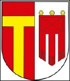 Das so genannte Taukreuz erinnert an dasPaulinerkloster Langnau (Nr. 38), zu dem das gesamte Gemeindegebiet gehörte. Für die Verwendung des goldenen Taukreuzes auf rotem Grund als Symbol für das Kloster gibt es keine schlüssige Erklärung. Das Kreuz ist weder das Wappen des Paulinerordens noch das Langnauer Klosterwappen. Letzteres zeigt ein Dreifachkreuz. Die rote, dreilatzige Fahne in silbernem Feld entspricht dem Stammwappen der Grafen von Montfort. Sie übten die Hohe Gerichtsbarkeit über das Klostergebiet aus und hatten ihre Grablege in der Klosterkirche (Abb. 1). |